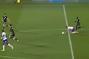 duang~兄弟这射门射得好射得准,一脚踢中了女足的屁股😤