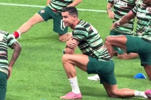 保持状态的秘诀!C罗赛前热身,腿部肌肉的线条清晰可见
