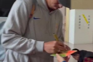 宠粉时刻!克雷桑给球迷们签名,表情认真
