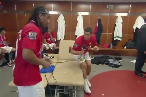 满满的回忆啊!16年前的曼联更衣室,C罗吃着汉堡采访安德森!