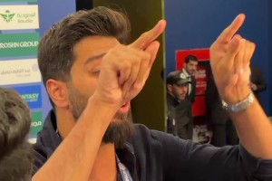 沙明摆脱防守杀入禁区,小角度打门完成双响!