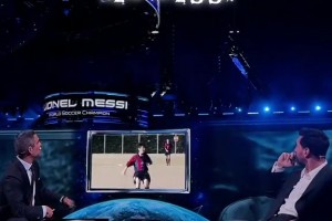 梅西在商业论坛上看自己的生涯高光,台下观众喊名字膜拜