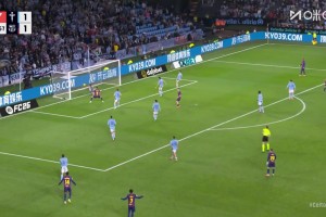 拉师傅长传到禁区,莱万门前垫射破门达成双响