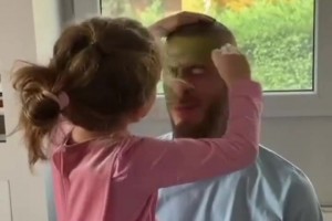 德赫亚女儿为老爹画了个美美的绿绿妆~是真宠女儿呀~