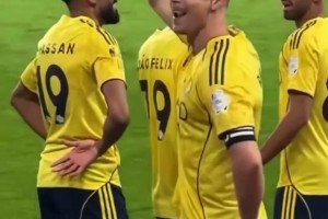 C罗倒钩破门后,队友为其戴上“皇冠”