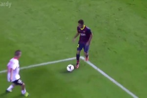 好骚呀~内马尔又发明了另一个第一触球:膝盖卸球~