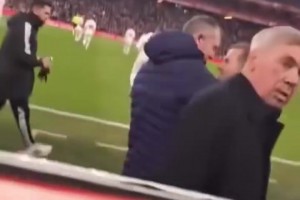 这位置挺好啊!名场面:球迷管安切洛蒂要口香糖吃!