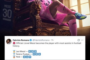 历史助攻第一人🥇 !罗马诺:梅西超越普斯卡什