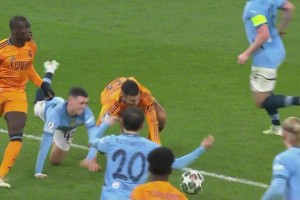判罚尺度是迷😵福登被放倒果断判点,贝林被同样动作放倒无表示