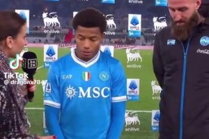 摸摸脑袋!在2米的门将米林门前,内雷斯看起来好像小孩啊~