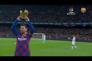 已经过去六年,梅西在诺坎普展示第六个金球