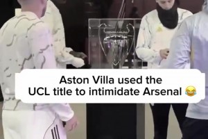 赛前维拉队在球员通道向阿森纳队展示他们的欧冠奖杯👀