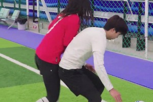 阮奇龙争抢球权时飞踹到雷森德腹部,主裁判向阮奇龙出示黄牌