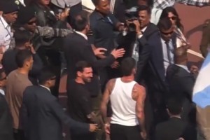 今天真得当好保镖😂!梅西下车后德保罗就跟在一旁
