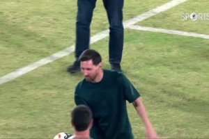 到达下一站!梅西将球踢上看台和球迷互动