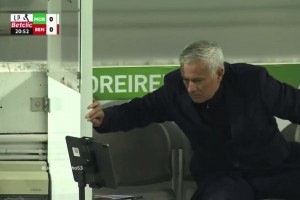 穆里尼奥抗议裁判判罚并观看回放,这一幕看着有点搞笑🤣