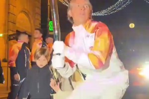 还是帅啊!菲利普因扎吉参加冬奥会火炬接力!