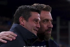 昔日队友!国米官推晒特写:两位意甲新锐教头惺惺相惜💪