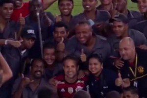 足球的魅力!弗拉门戈球员邀请清洁工一起庆祝夺冠