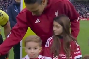 温情!范戴克携手若塔女儿共同入场!