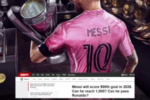 ESPN:预计梅西41岁达成千球,能否能超过罗? 梅西更年轻