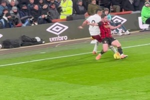 主裁没看到吗?现场实拍热苏斯遭对手抱腿犯规