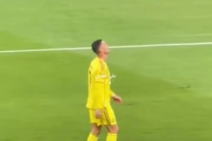 新月球迷高喊梅西的名字挑衅C罗!C罗则向他们飞吻回应😂