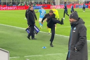 意大利炮!实拍:那不勒斯被判点后孔蒂在梅阿查场边怒踢皮球染红