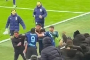 激情🔥!实拍:皮奥救主后,齐沃直接杀向球门前参与球队庆祝