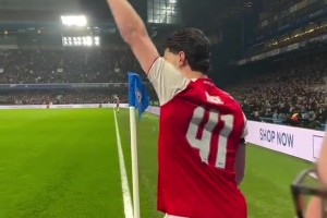 切尔西球迷亲切问候干扰赖斯,赖斯助攻破门后冲着观众席大笑😂