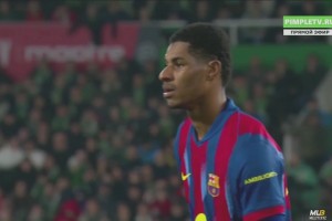 再造威胁!巴萨角球被解围不远!拉什福德直接凌空抽射擦柱而出!