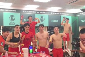 赢球爽😁!U23国足球员更衣室手拿香蕉,跳起流行的刀马舞