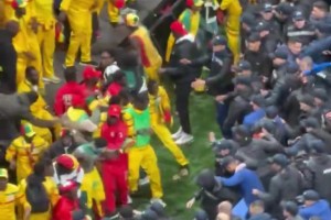 一片混乱😳塞内加尔球迷试图冲进球场,与警方发生冲突