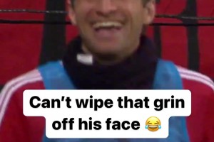 阳光开朗大男孩!名场面:穆勒球门旁看热闹差点被砸!