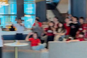 这么夸张!实拍:费内巴切球迷向加拉塔萨雷球迷投掷烟花