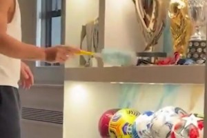 家人拍到劳塔罗在清理他的奖杯,小心翼翼地清理大力神杯😉