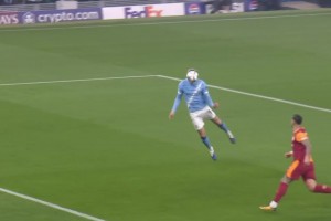 差之毫厘!艾特-努里精准传中,哈兰德飞身头球稍稍偏出!