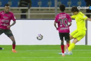 沙明摆脱防守杀入禁区,小角度打门完成双响!