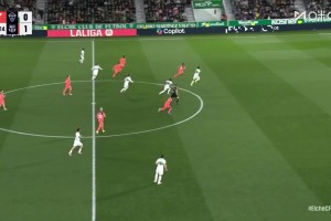 就是打身后!阿尔瓦罗单刀低射远角得手,埃尔切扳平巴萨