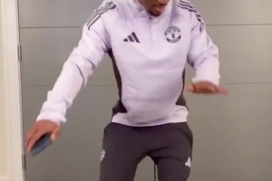 曼联3-2战胜富勒姆后,阿玛德在更衣室跳舞庆祝