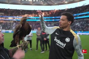 看给孩子吓的!名场面:埃基蒂克当年与法兰克福吉祥物的互动~