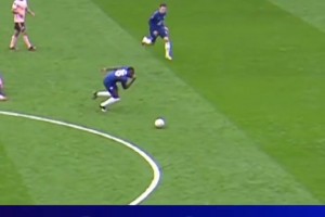 库库雷利亚捂头发倒地,蓝军球员投诉勒温扯头发,裁判判罚未犯规