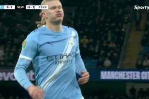 可惜了!谢尔基送精准直塞,哈兰德单刀打门被扑出!