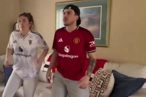 幸福时刻!当舍什科打入制胜球,曼联情侣球迷的反应