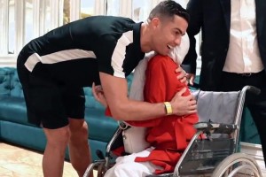 伊朗艺术家用双脚创作出C罗的肖像画,C罗去伊朗时曾拜访过她~