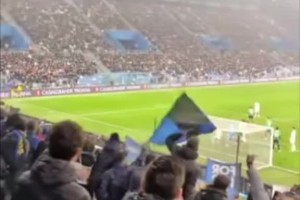 蓝黑生涯首球💪!实拍:阿坎吉头槌破门,国米球迷看台一片欢腾