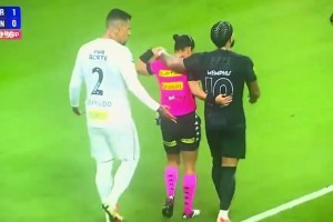 德佩和女裁判勾肩搭背,后者拒绝给予了警告😂