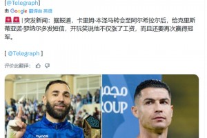 电讯报:本泽马去新月后和C罗开玩笑“我涨了薪 而且又要夺冠了”