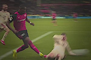 进球无效!邦本宜裕反击单刀破门,但越位在先,铁人仍0-1落后