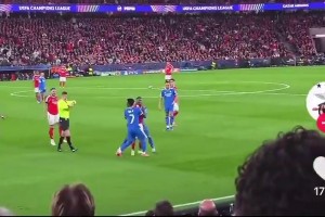 登贝莱角球助攻内维斯头球破门!巴黎反超比分,2-1领先拜仁!